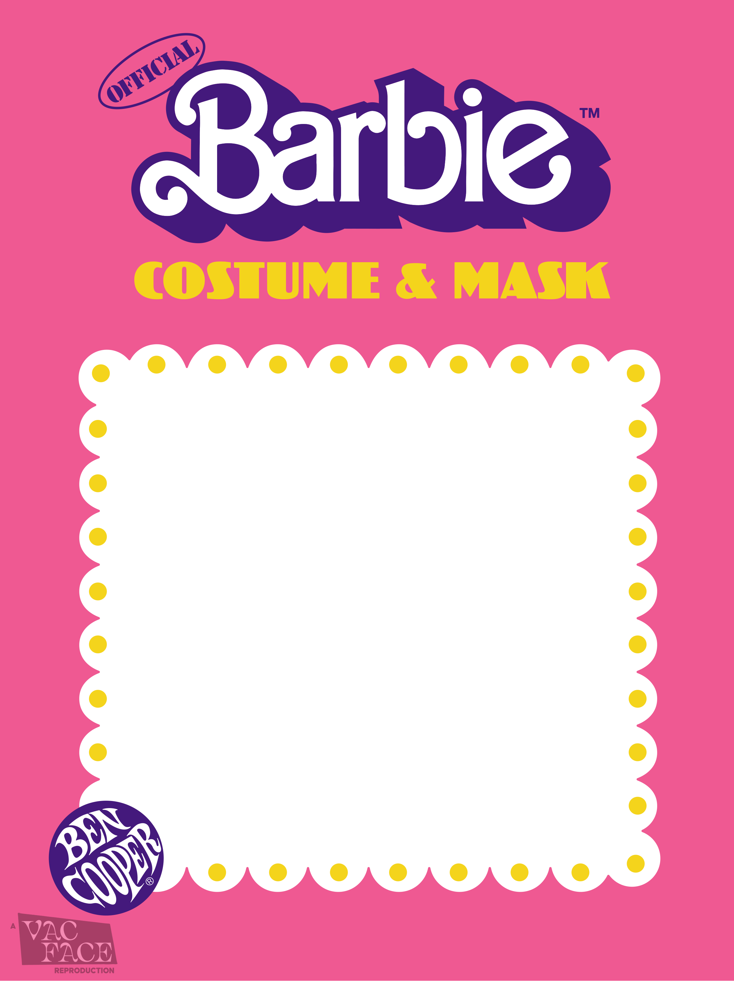 Printings from the late 1980s had a Barbie logo with a shallow drop shadow along with Ben Cooper’s pumpkin logo and copyright text at the bottom. They were also wrap-around boxes with a full-color back panel.