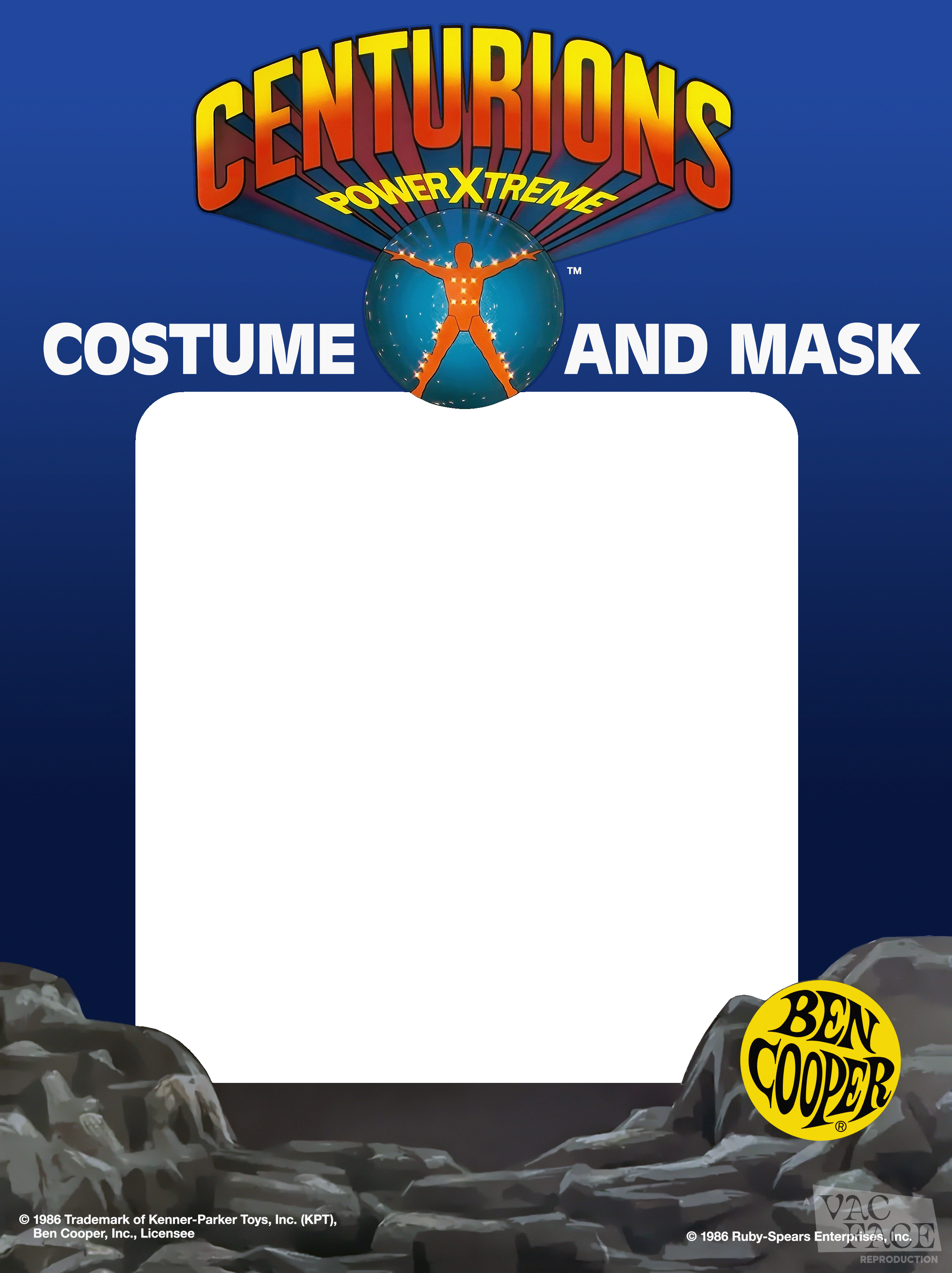 Centurions Box click for full-size image YEARS: 1986-1987 Box for licensed character costumes from the animated television series and accompanying toy line. Design Notes: