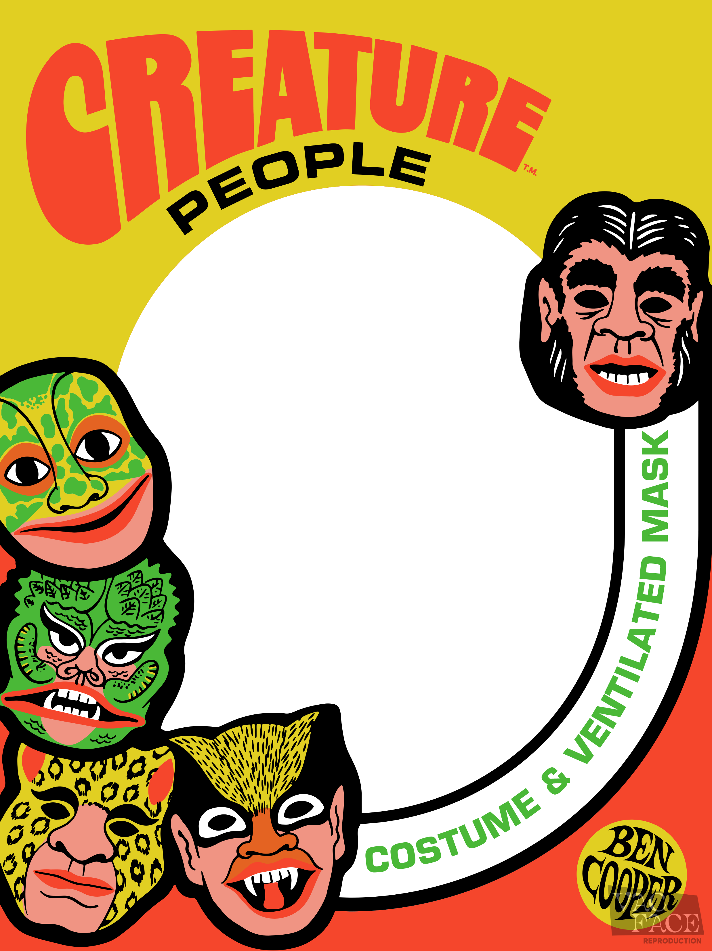 All of the available masks are depicted on the front; (clockwise from top right) Apeman, The Bat, Leopardman, Dragonman, and Frogman.