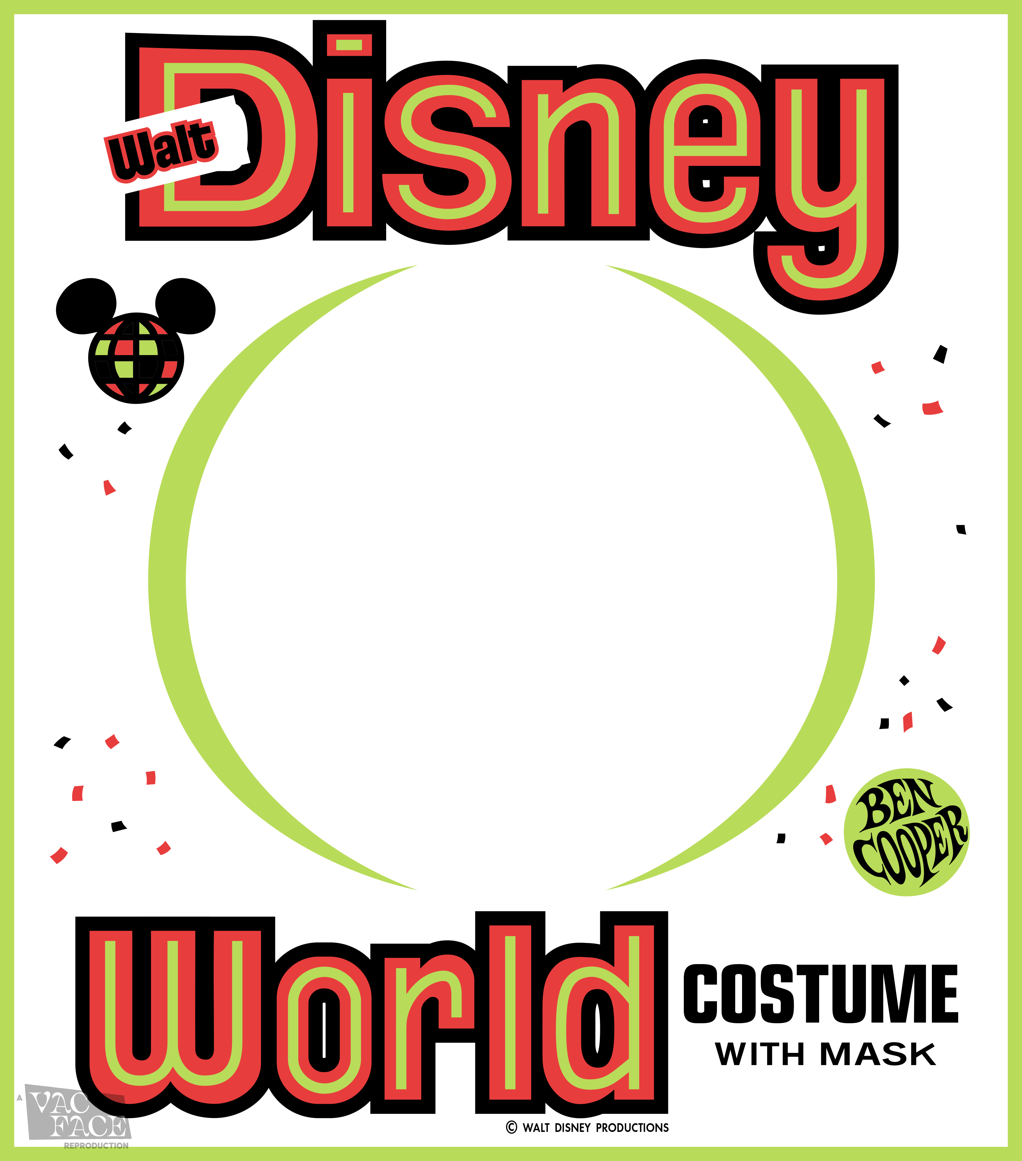 Disney World Box click for full-size image YEARS: 1972-? Large format box for licensed Disney character costumes. It was designed to coincide with the opening of the Disney World theme park in Florida. side panel illustration Design Notes: