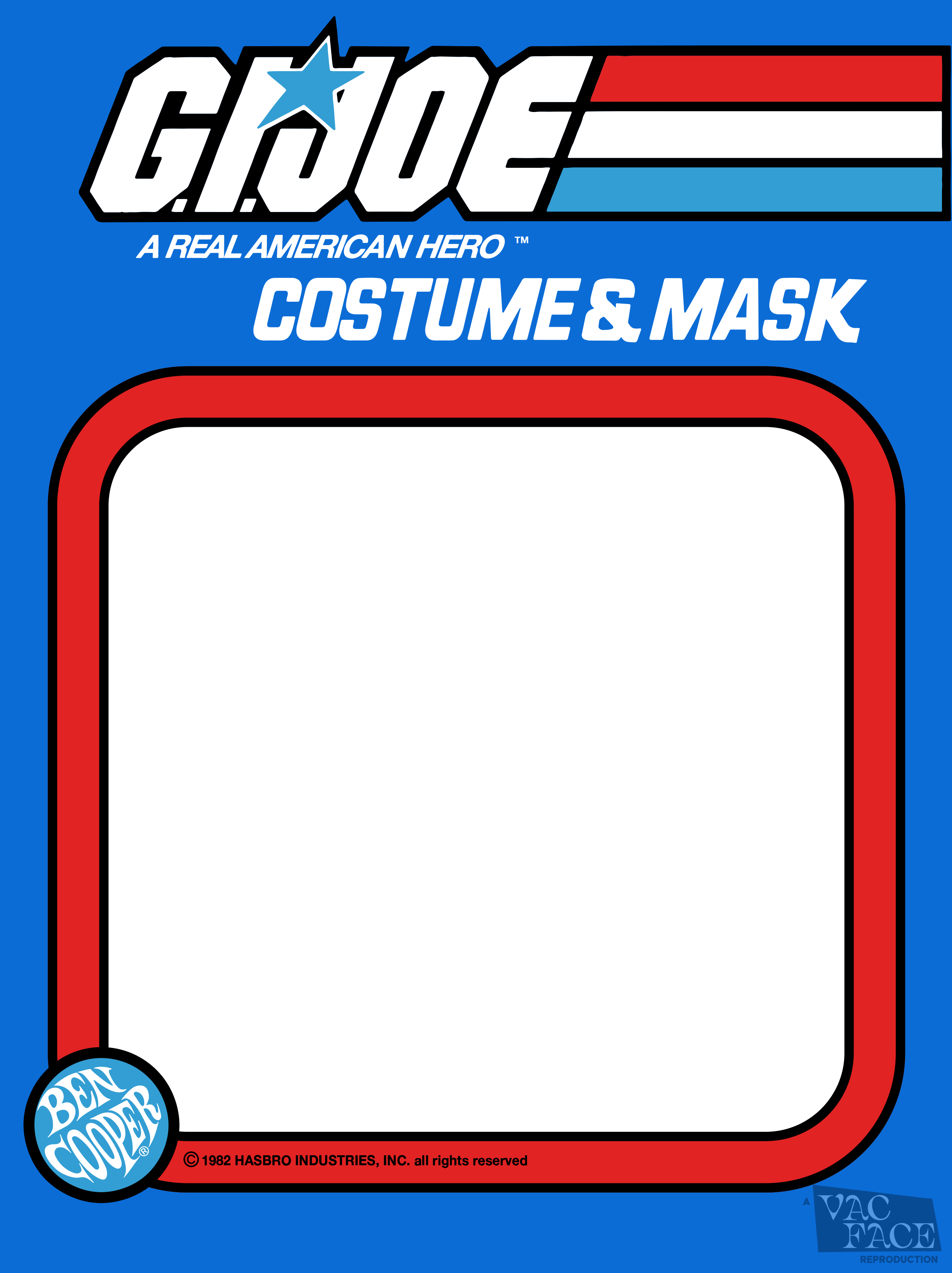 GI Joe Box click for full-size image YEARS: 1982-1986 Box for licensed character costumes from Hasbro’s toy line and its accompanying animated series. Design Notes: