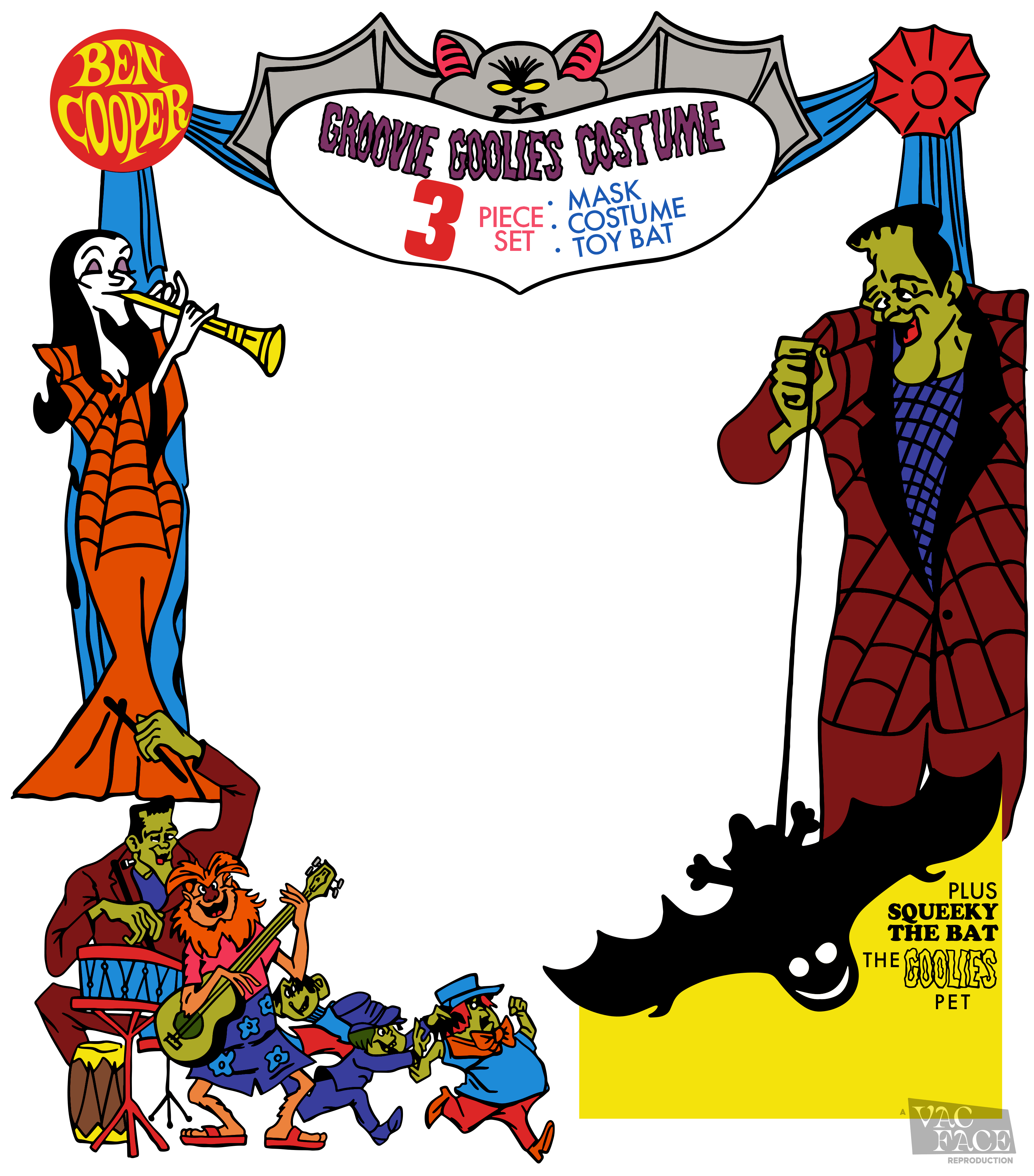 Each costume came with Squeeky, a rubber bat on an elastic string, and a squeezable noisemaker – a toy that was also available separately.