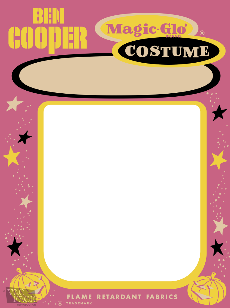 Some pink box side panels had an alternate Ben Cooper logo with slimmer stencil lettering.