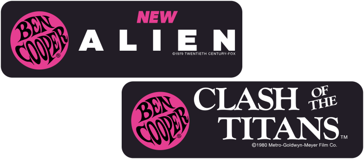 The Alien costume and the Clash of the Titans line both came in the electric orange version with their respective logos on a dark background printed at the top.
