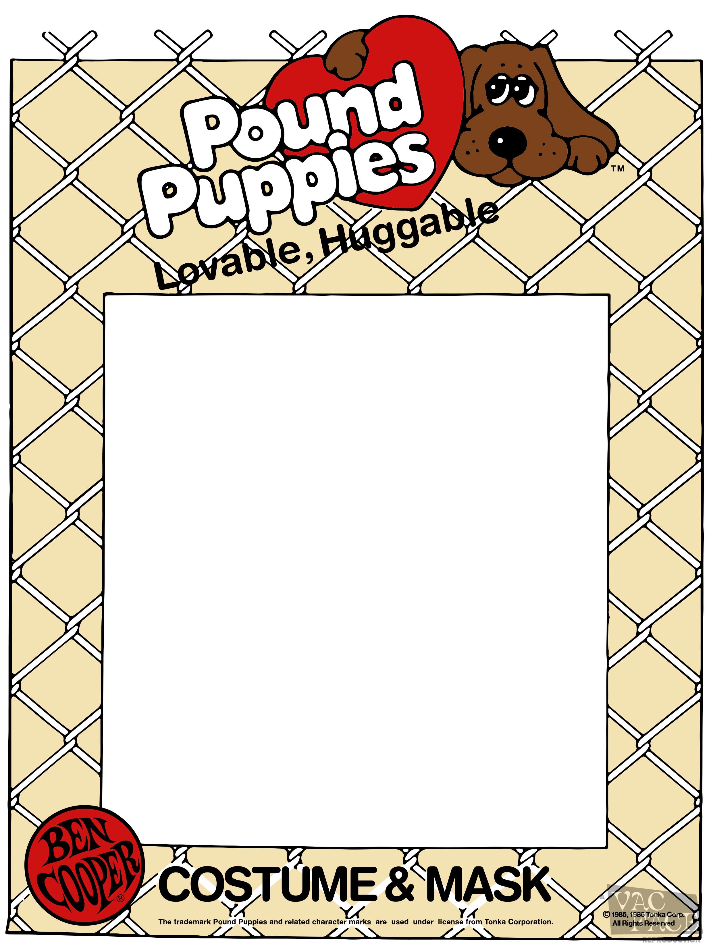 Pound Puppies Box click for full-size image YEARS: 1985-1986 Box for licensed character costumes from Tonka’s plush toy franchise. Design Notes: Typefaces: Helvetica Rounded.