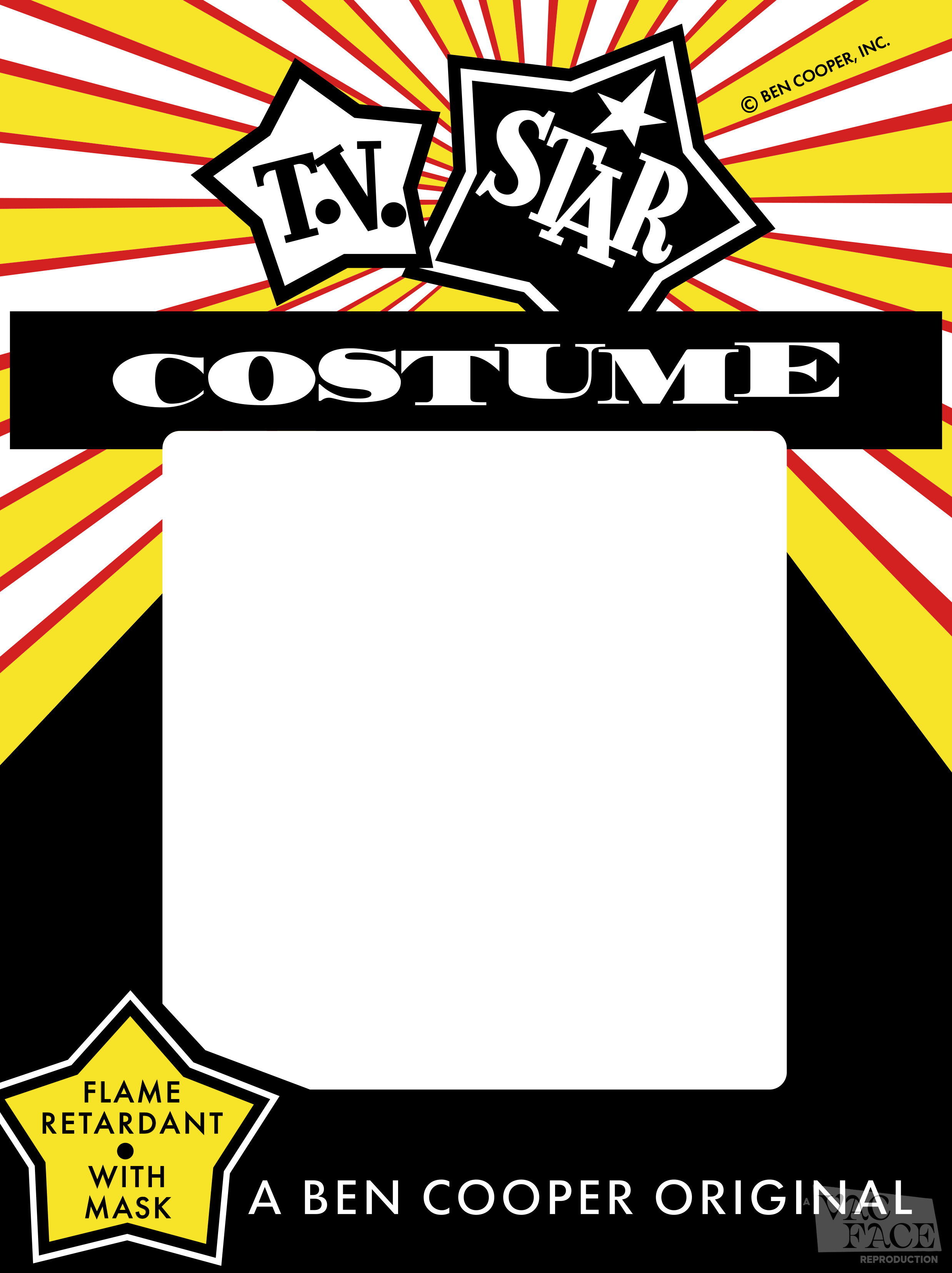 T.V. Star Box click for full-size image YEARS: 1959-1964 Box for licensed costumes of television characters and personalities. The box was pictured in a 1961 newspaper ad (link) and a retail Halloween store display manual (link). Design Notes: Typefaces: Filmotype Ruler (“costume”).